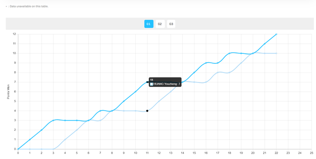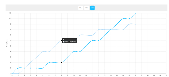 第二局梁靖崑是一败涂地,第三局梁靖崑开局打得不错一度6-2领先4分,可随着比赛的深入大胖的领先在被黄友政蚕食,在8-8时已经被扳平,随后黄友政10-8拿到赛点,最终黄友政完成大逆转。